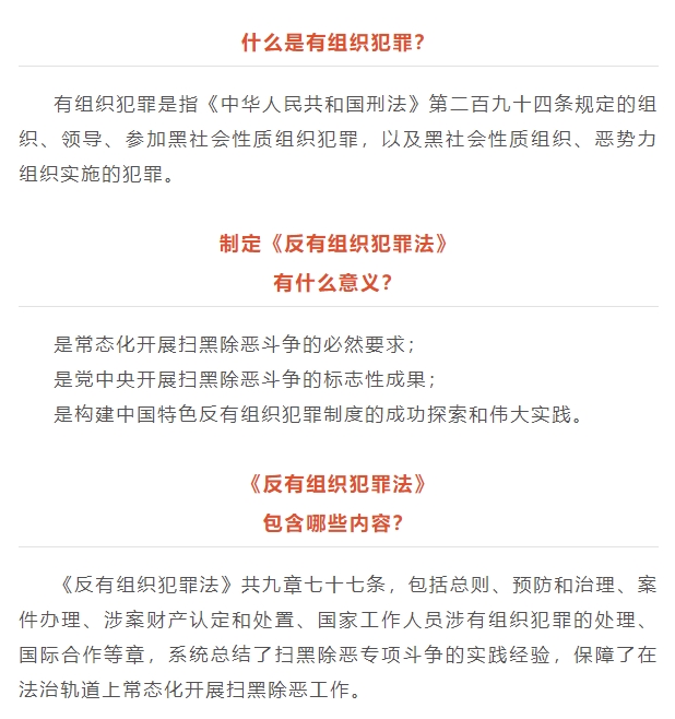 2021年12月24日,十三屆全國人大常委會第三十二次會議通過《中華人民共和國反有組織犯罪法》(以下簡稱《反有組織犯罪法》),自2022年5月1日起正式施行。
